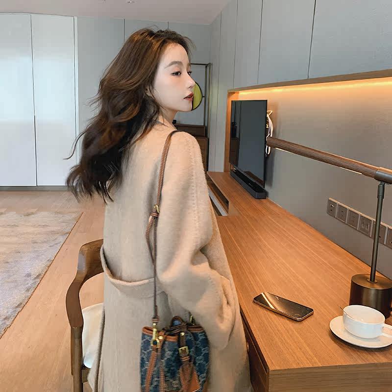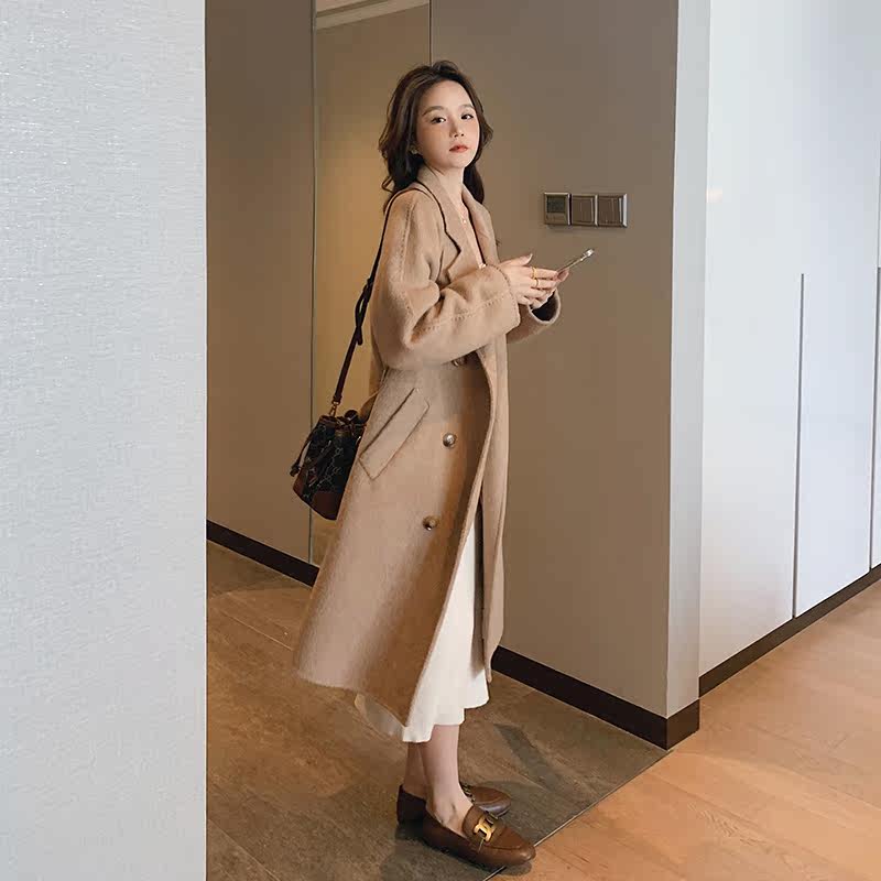 2021 New autumn and winter clothing bifacial cashmere dresses with a long version of wool high-end camel hair and woollen jacket
