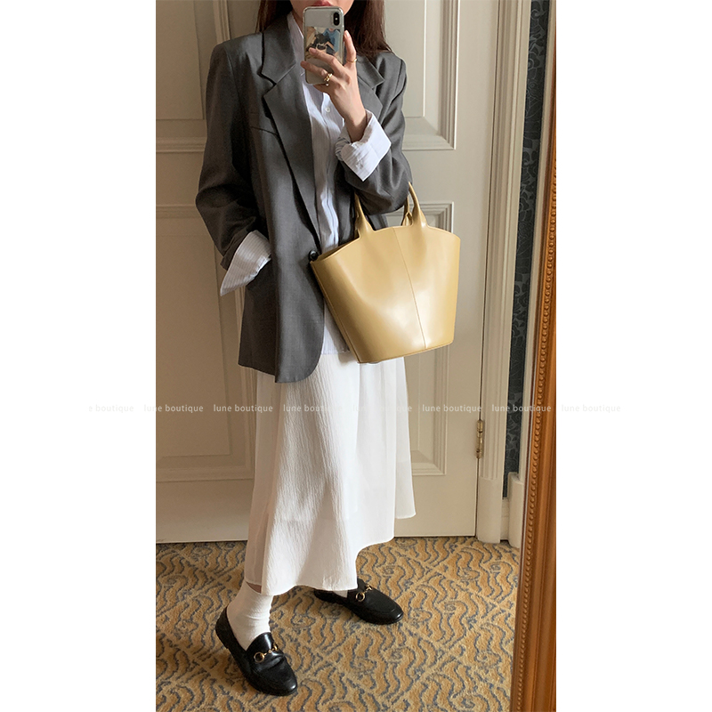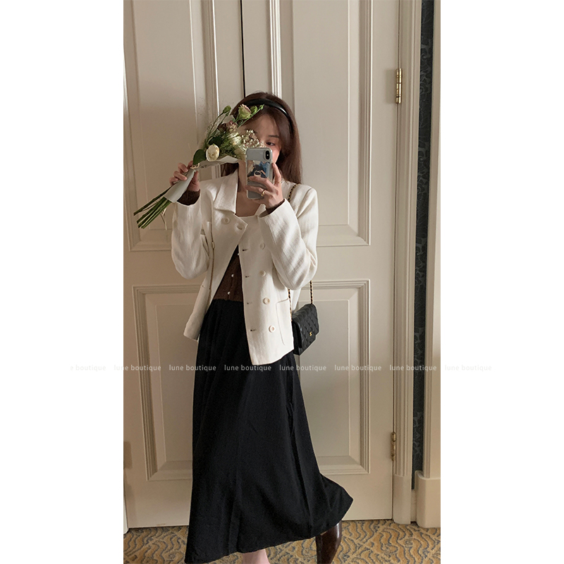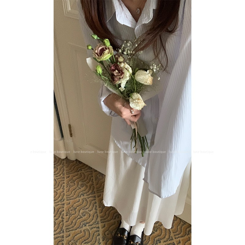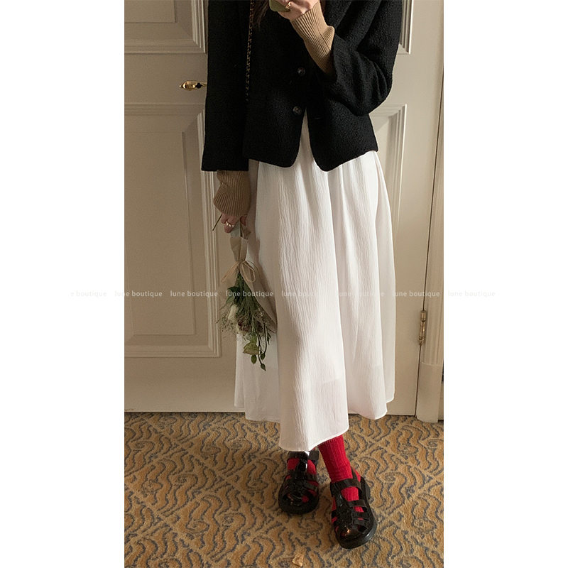Lune white skirt women's spring and autumn design sense niche high-waisted cover-up thin mid-length pleated a-line skirt