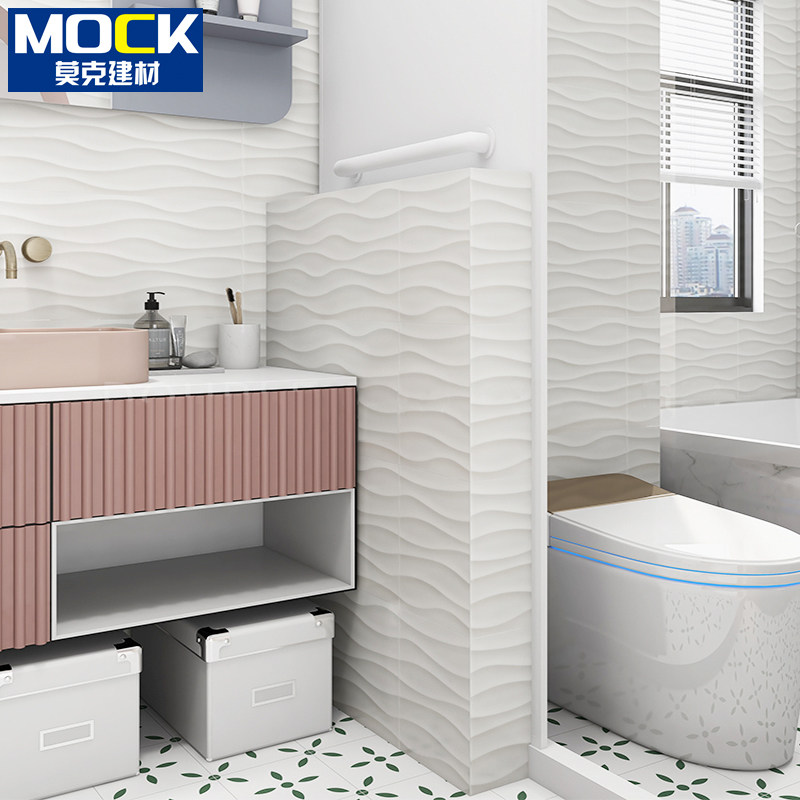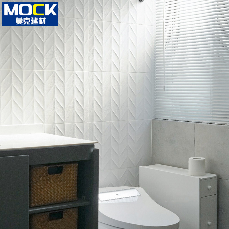 French white fishbone bathroom wall brick three-dimensional concave-convex kitchen bathroom balcony all-ceramic wave texture tile
