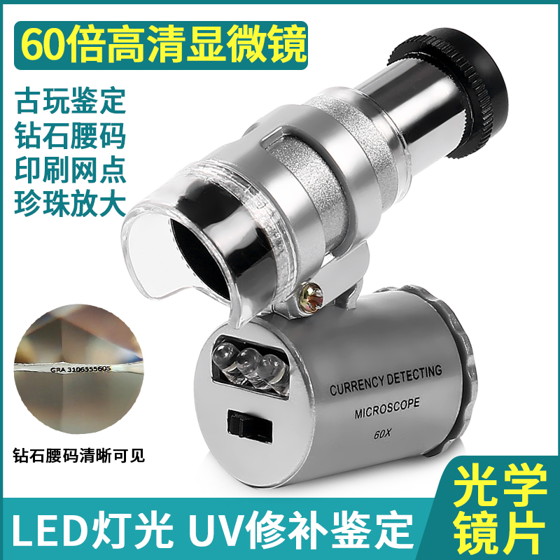 Solar Fire High Times Identification Diamond Waist Code GIA Coding Magnifier With LED Microscope Ancient Play Numismatic Bronze Porcelain Jade Connoisseurst high-definition 60-fold UV Purple Light lamp to identify tobacco alcohol fluorescent-Taoba