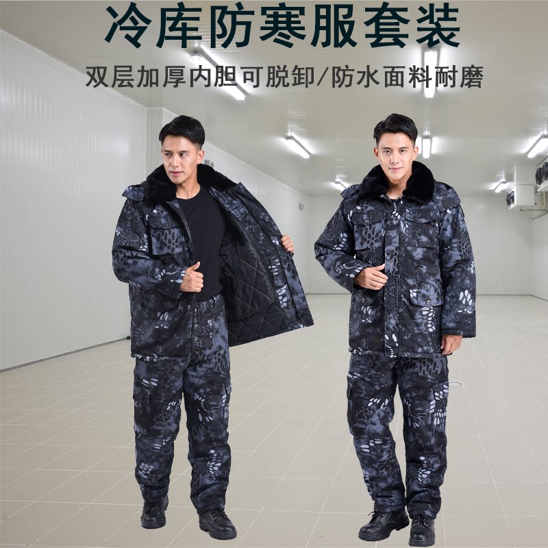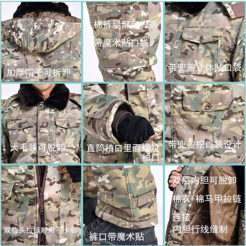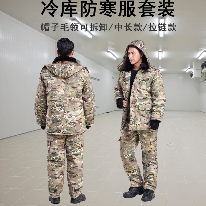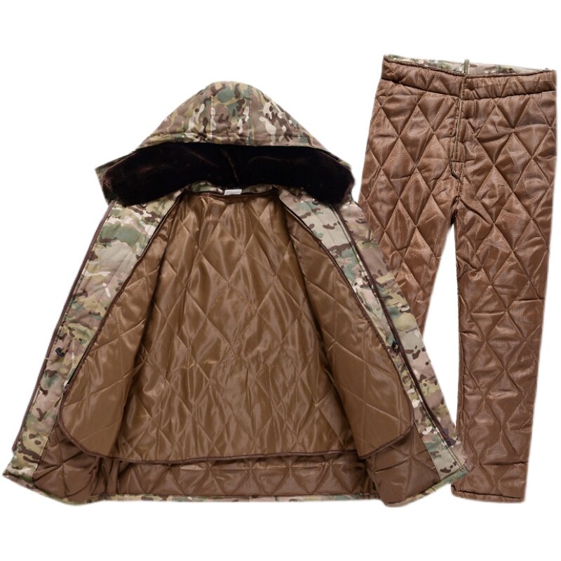 Old military fans cotton coat men winter camouflage thickening medium and long cotton pants set special cold storage suit