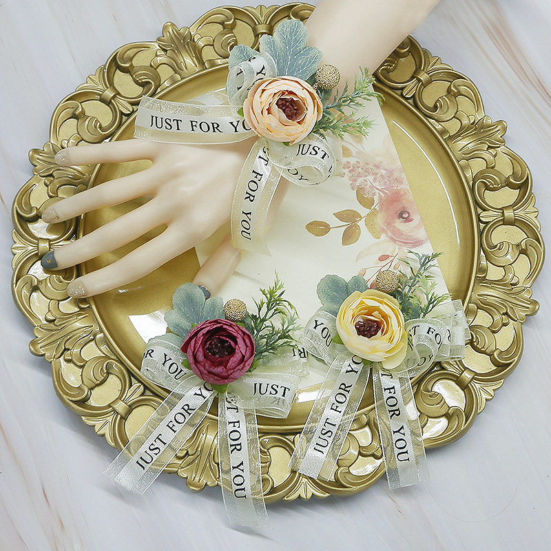 Bridesmaid wrist flower sister hand flower bride wrist flower forest knot wedding high-end super fairy dance children's bracelet flower
