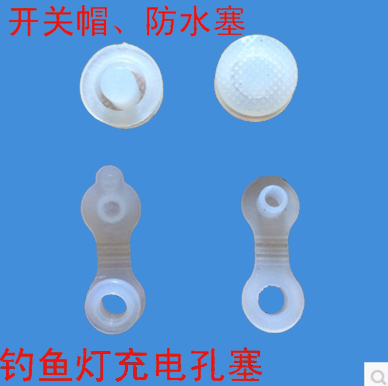 Blue and white flashlight without electricity and no charge Blue and white light socket can be connected to mobile charger Two charging plugs Switch cap Switch cap Charging plug Switch cap Charging plug Plastic parts Fishing light charger Within 3 sections