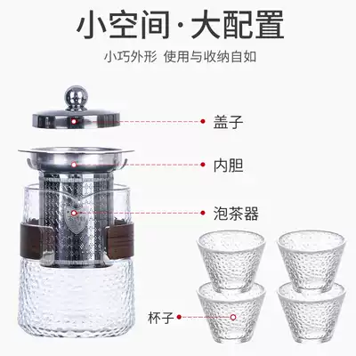Travel tea set set Portable bag Household Kung Fu glass teacup Teapot Outdoor tea making supplies Quick cup
