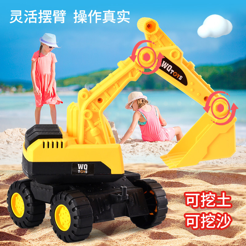 Children's toy car engineering truck excavator boy digging into bulldozer digging pile high machine baby pushing 3 years old and over 1
