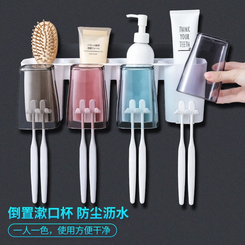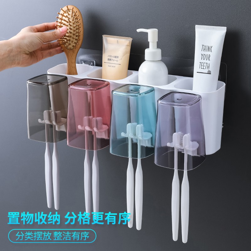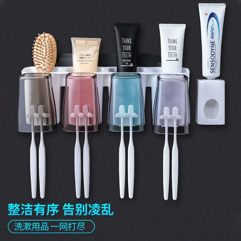 Powder room toothbrush rack mouthwash cup set wall-mounted toothbrush holder toothbrush cup net celebrity brushing cup free punch