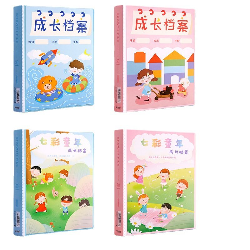 (A4 Childlike Heart-Blue) 80 Insert Pockets Send 40 Growth Profile Inner Core (A4 Childlike Heart-Pink) 80 Insert Pocket Send 40 Growth File Inside (A4 Galaxy-Blue)