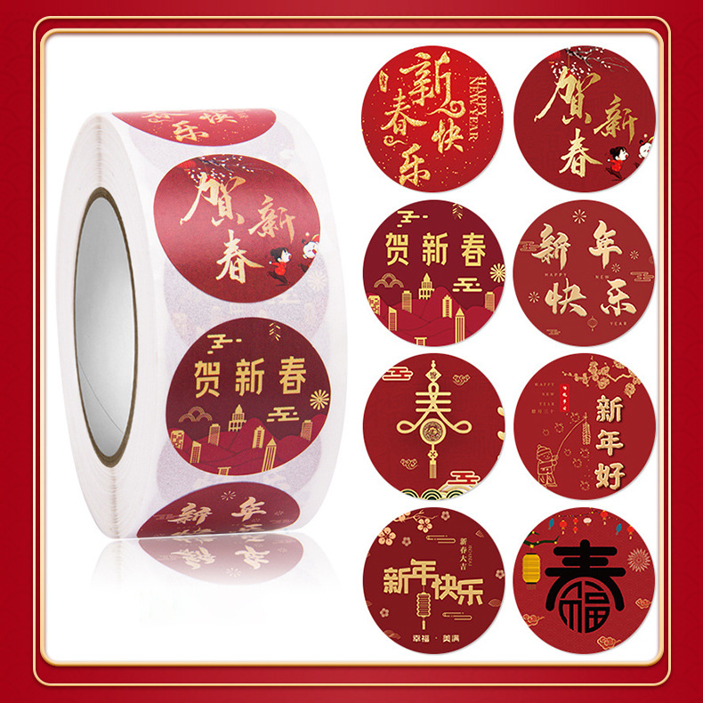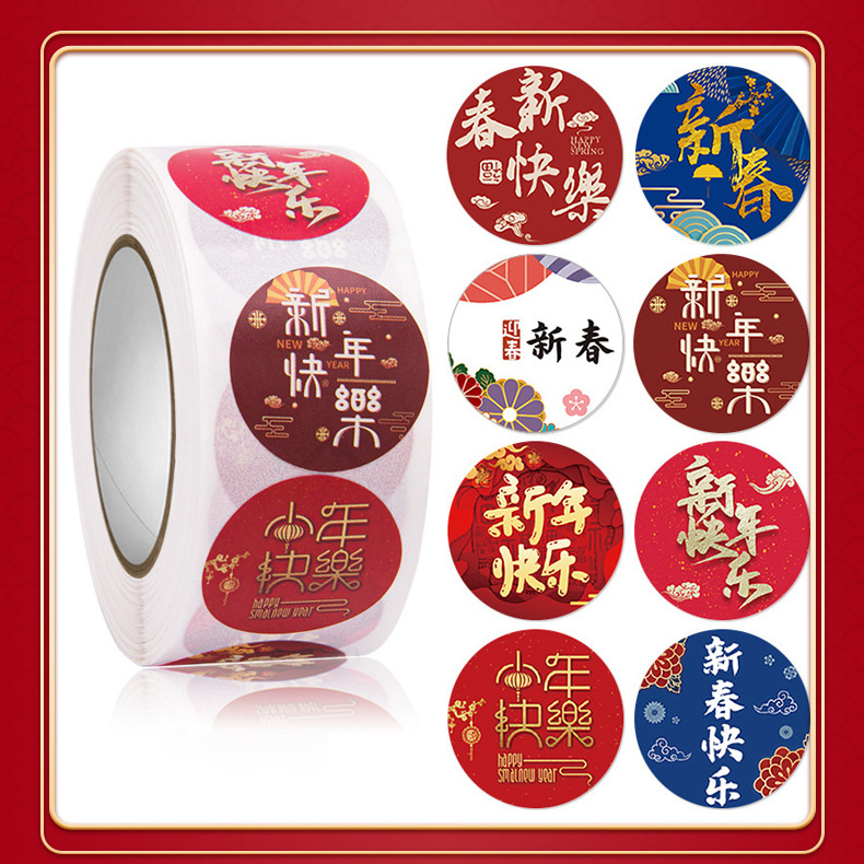 2022 New Year's Day Happy New Year New Year Sticker Window Placement Snack Wrapping Sticker Custom Souvenir High-grade Packaging Gift Box Trademark Label Sticker Printing