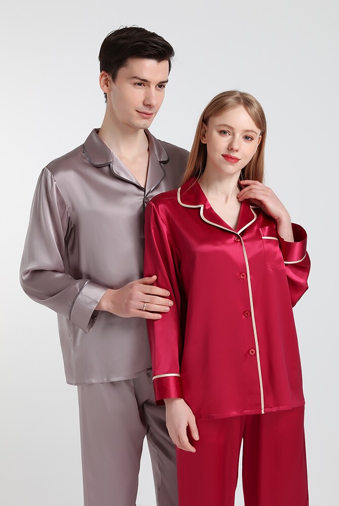 Suzhou Terse Silk Mulberry Silk Mulberry Silk Spring Autumn Heavy Pound Men And Women Long Sleeve Lovers Pure Color Home Clothes Real Silk Pyjamas