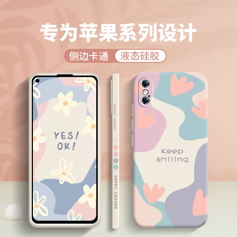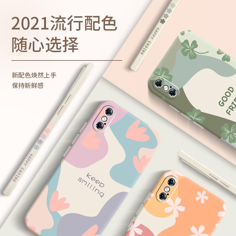 Suitable for apple x mobile phone protective shell silicone iphone xsmax all-inclusive lens xr anti-fall protective cover x frosted soft xs side pattern straight edge personality creative female model net red new trendy brand