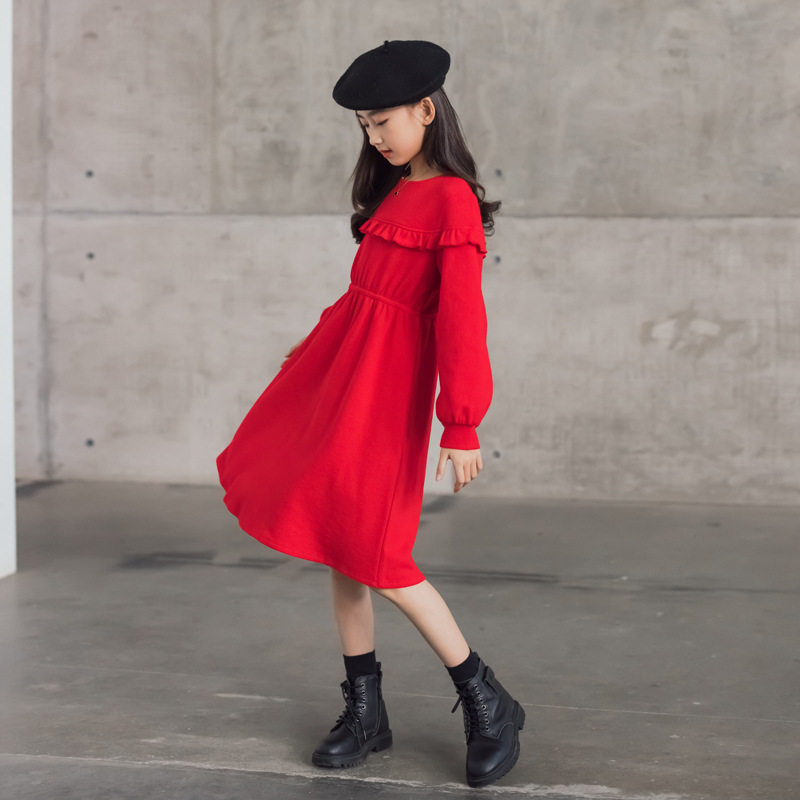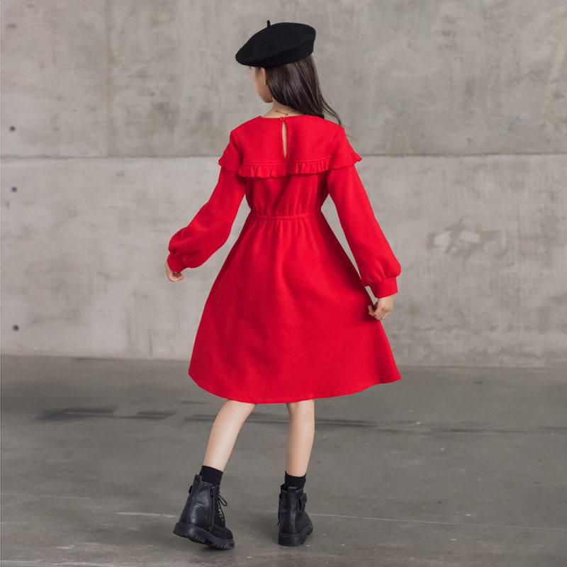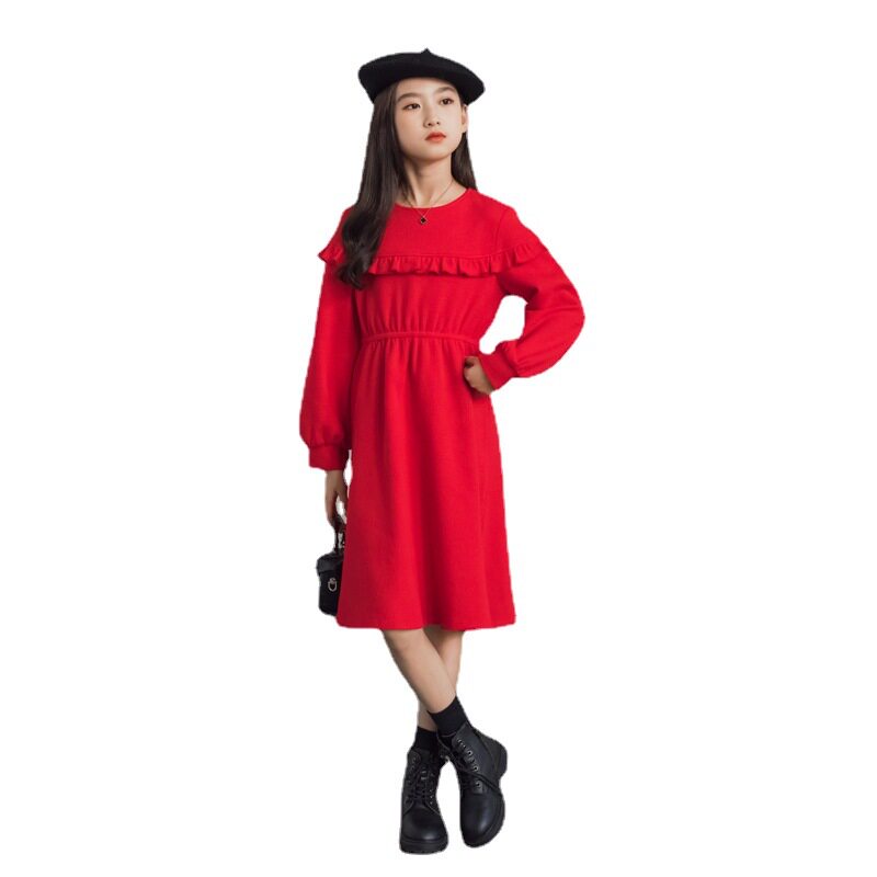 South Korea SZ Autumn Winter 2021 new collection waist lantern sleeves Long sleeves A-word dress CUHK Scout dress girl ocean wave