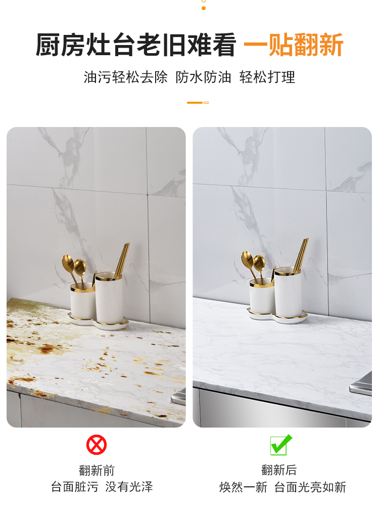 Thickened kitchen oil-proof sticker countertop stove refurbished marble waterproof self-adhesive wallpaper integral cabinet fireproof and high temperature resistant