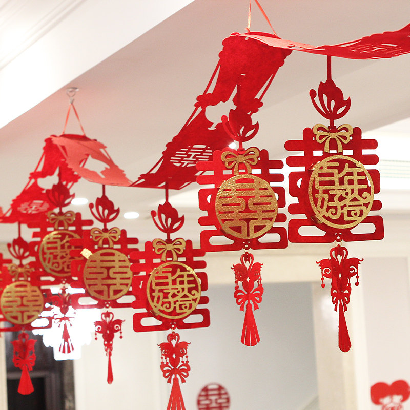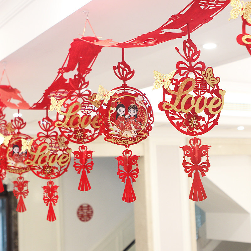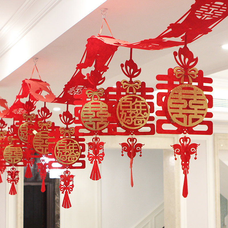 Wedding Festive with Flowers Hanging Curtains Wedding house Placement suit Supplies Men's party Wedding Pendant New Room Living-room Decoration Hanging