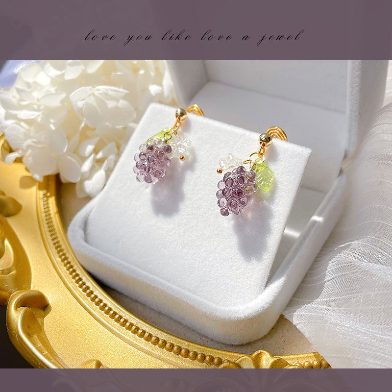 A pair of purple grape mosquito coil ear clips, a pair of pads, a pair of green grape mosquito coil ear clips, a pair of pads with ear piercings, please note