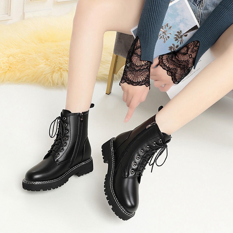 European station Martin boots women's British style 2022 autumn and winter new all-match short boots plus velvet thickened net red locomotive boots