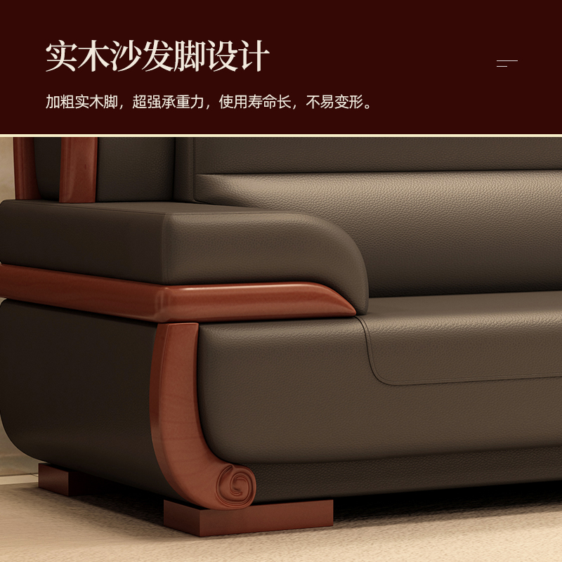 Office sofa business reception boss office modern Chinese high-end atmospheric leather three-person solid wood combination