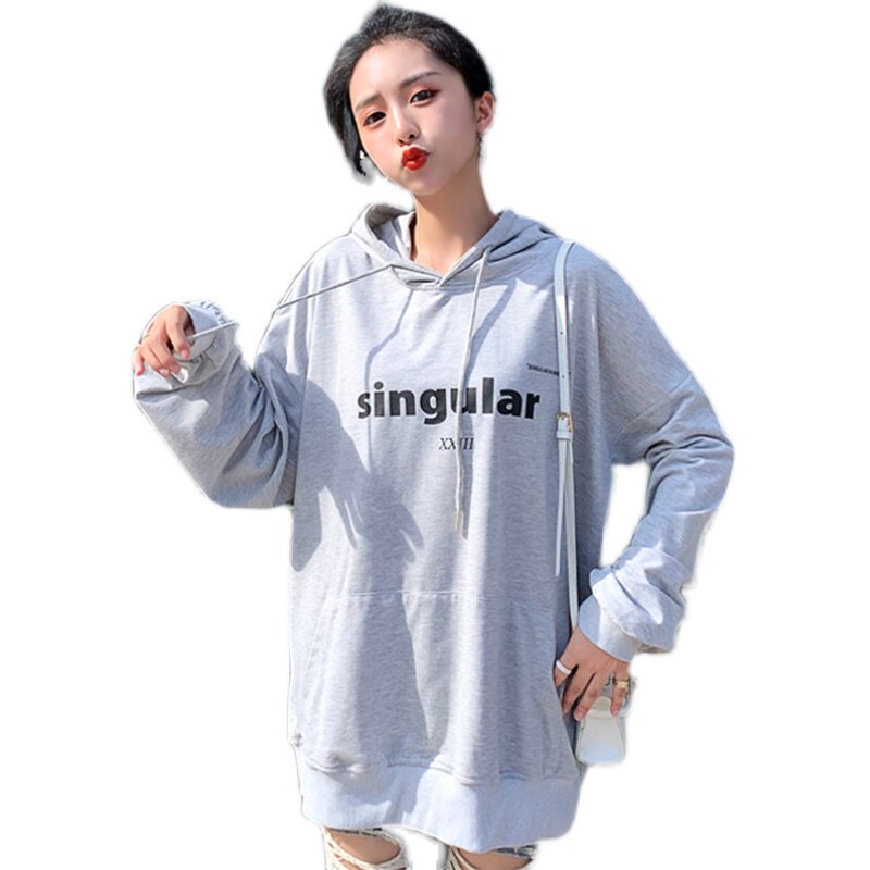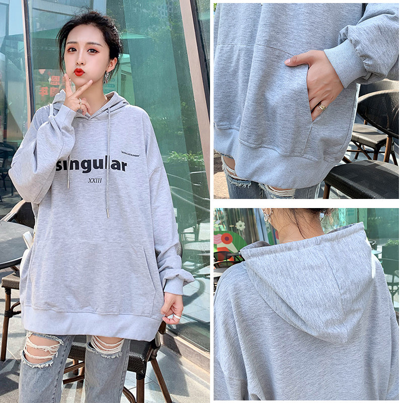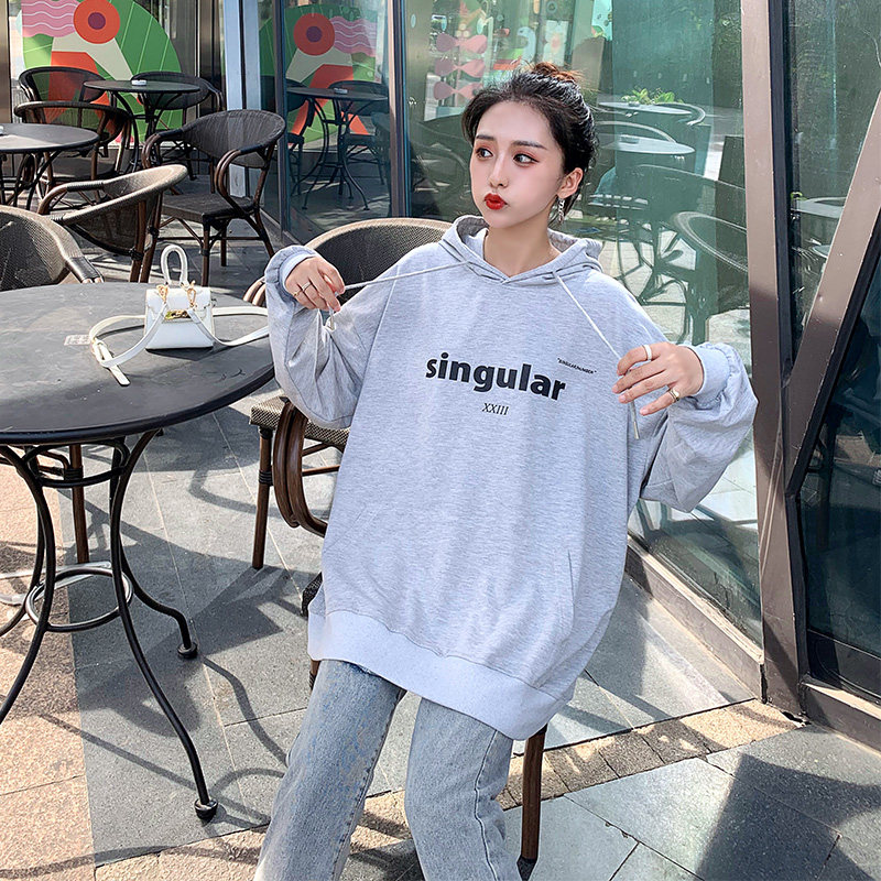 Fat mm large size 200 catty with cap autumn dress Long sleeves thick cotton T woman 2021 Korean version loose fashion blouse gestation damp