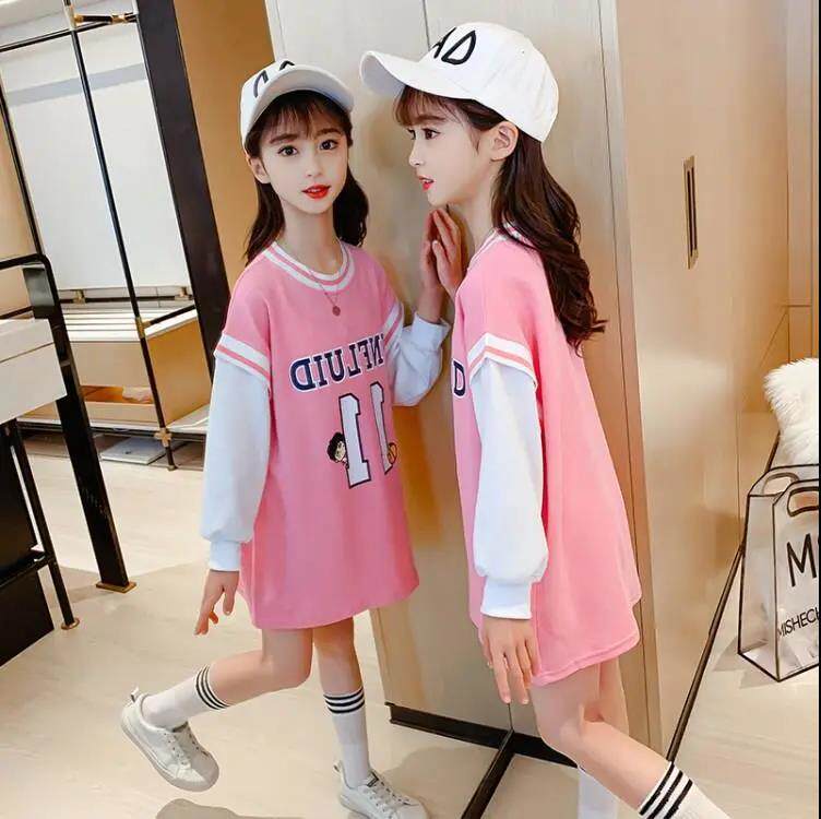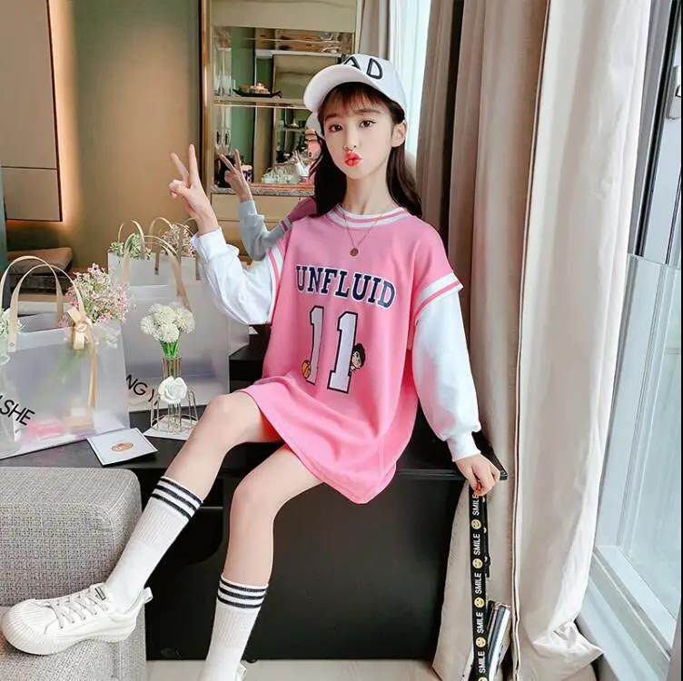 Girl mid-length thick cotton T dress spring autumn season new CUHK Tong dress Han version Loose Foreign Pie Trendy Long Sleeve Blouse Jacket