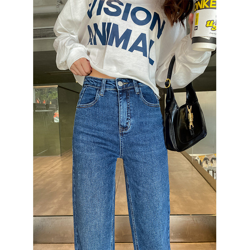 Little dark blue super high waist plus velvet straight jeans women 2021 autumn and winter New thin velvet wide leg trousers