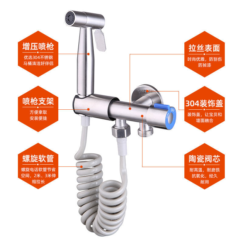 Toilet Partner Spray Gun Faucet Flush Cleaner High Pressure Tee Double Cut Switch Angle Valve Woman Wash Net Body Toilet