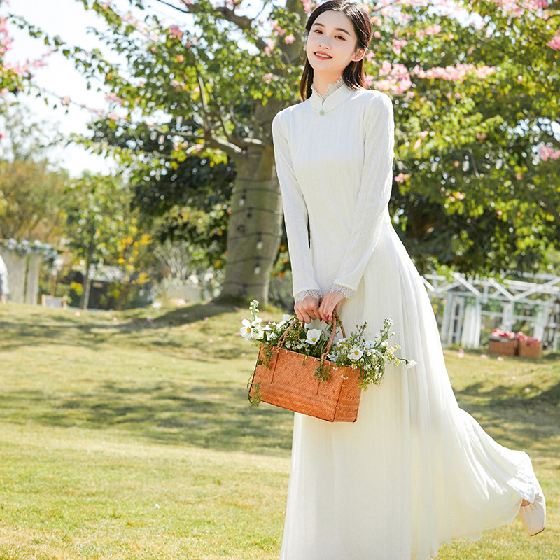 Qipao Improved Version of Tang Dress Spring China Wind Women's Dress Tea Suit Women's Body Odei Waist Display Slim and Lean Ancient Wind Dress
