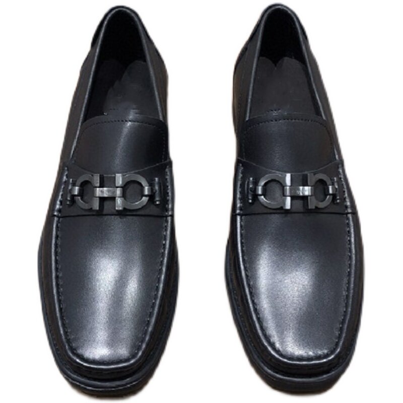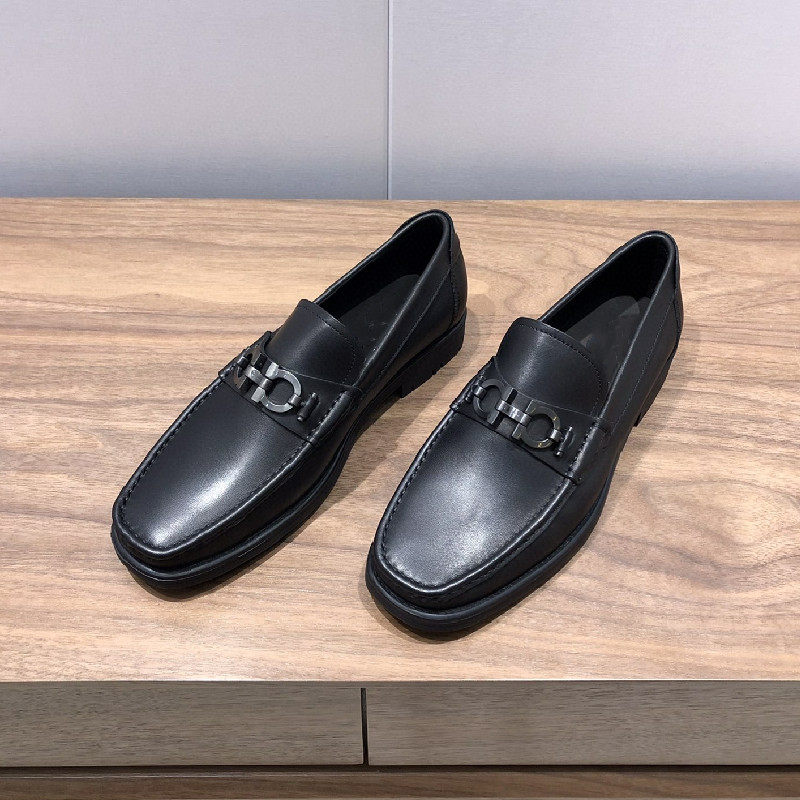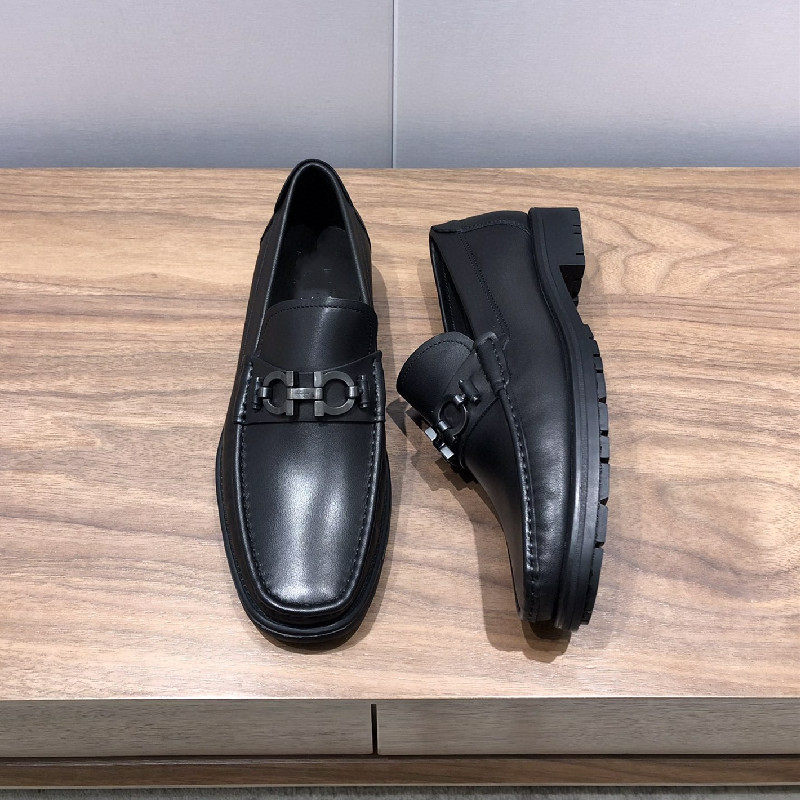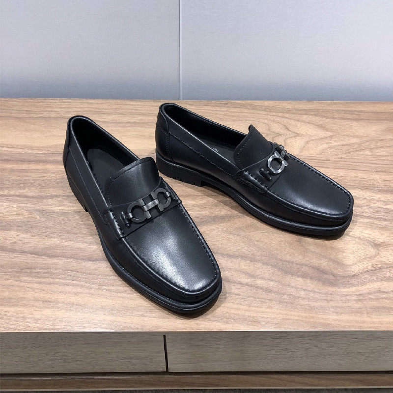 Tire cowhide horseshoe buckle leather shoes men's business casual metal horsebit buckle thick soled square head one foot pedal Loafer shoes