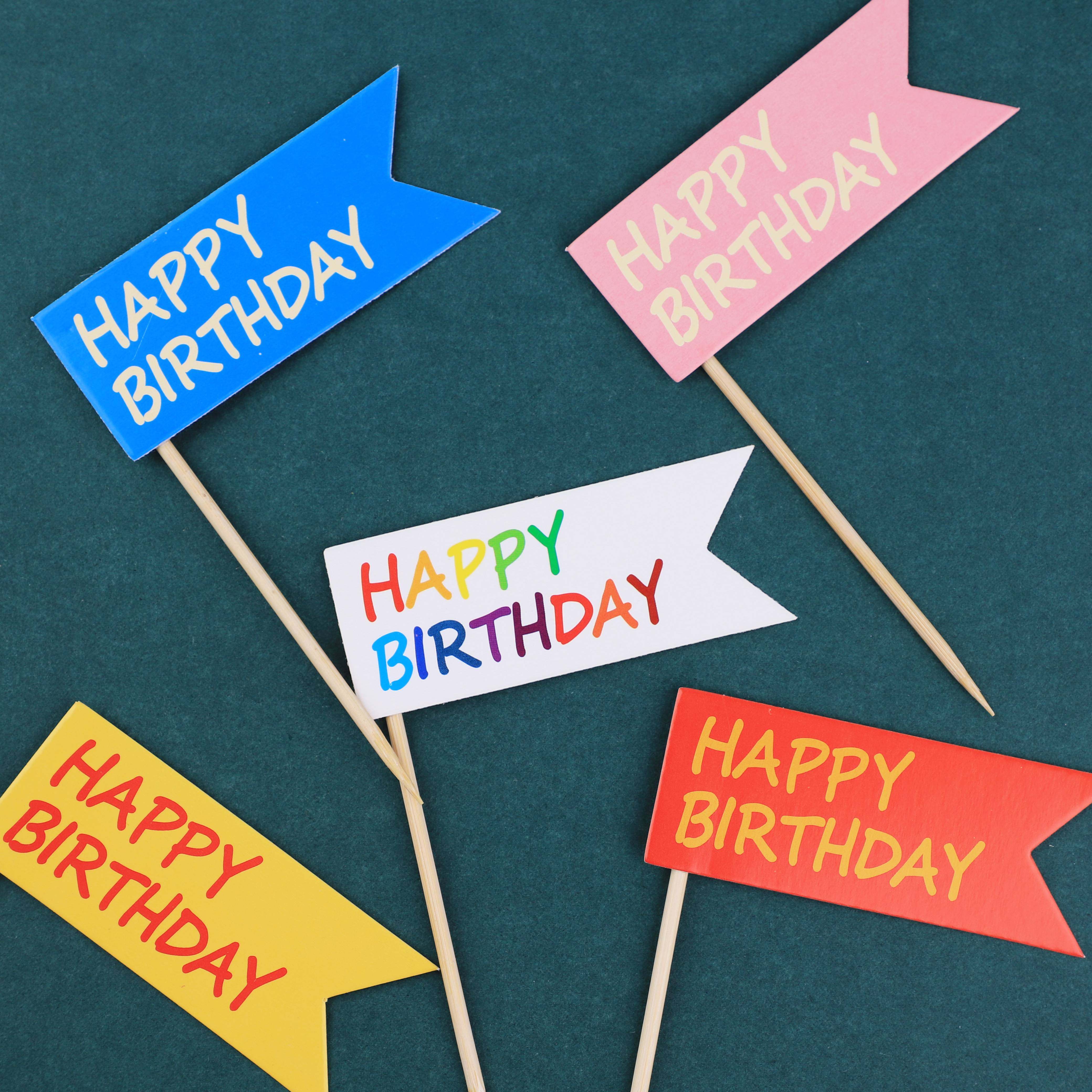 INS Korean vintage HAPPYBIRTHDAY flag birthday cake plug cup cake decoration flag planting