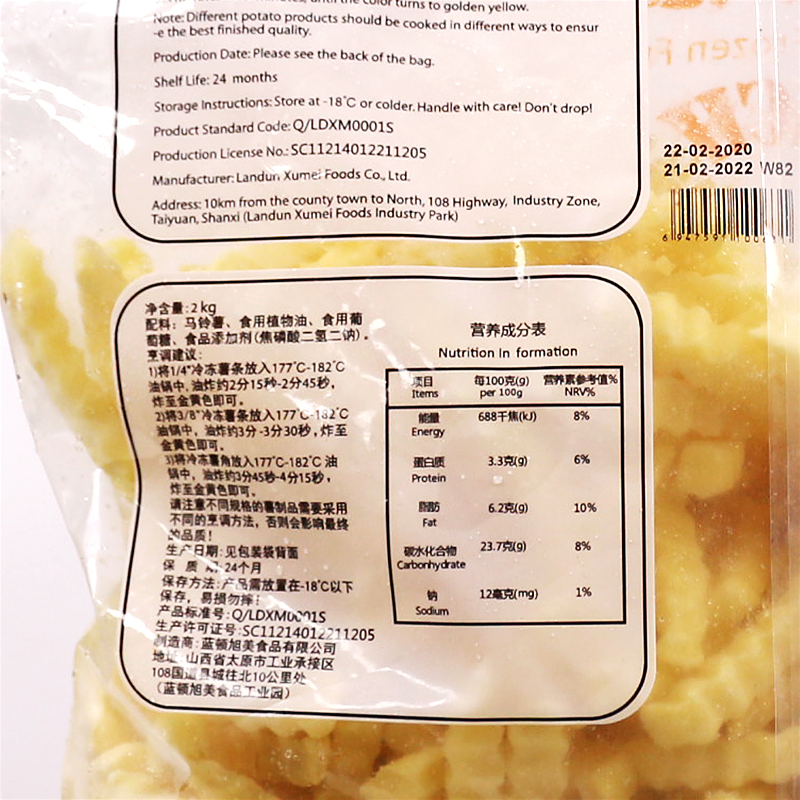 Landon Xu Sweet 2kg frozen Western meal hamburger shop specially fried wave fries and fries fast food