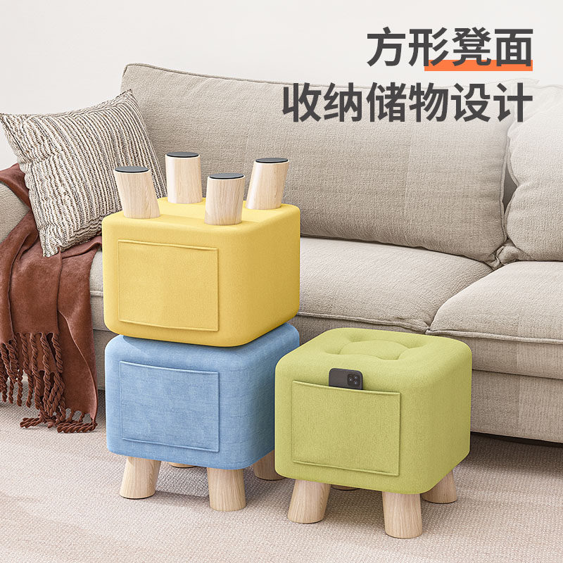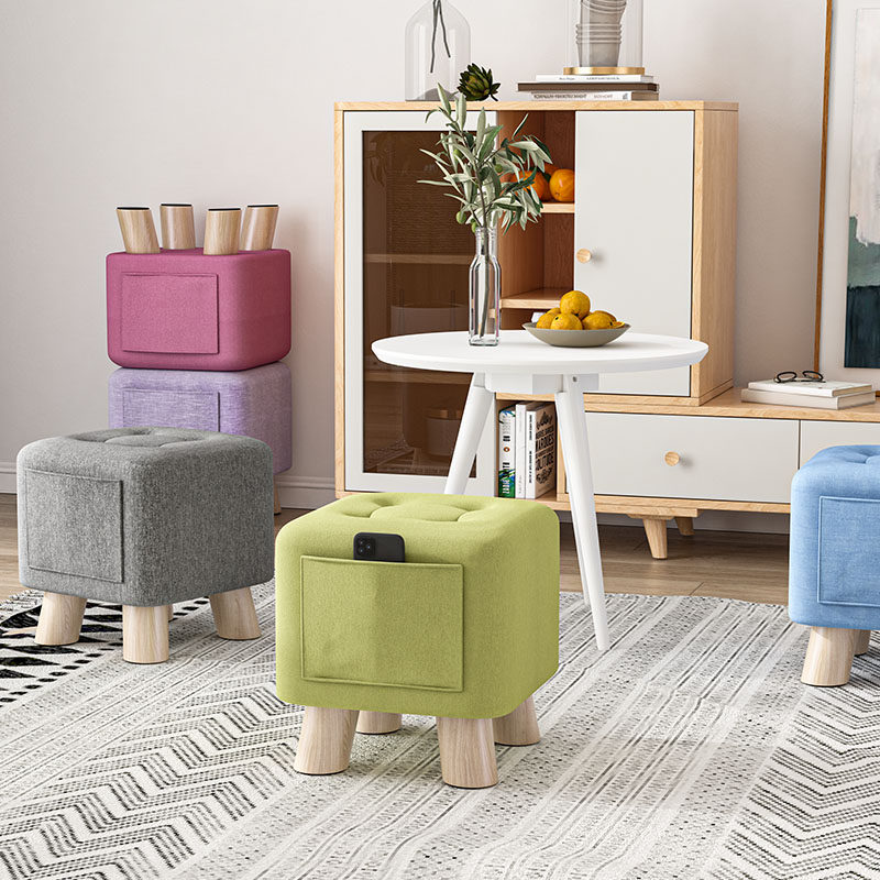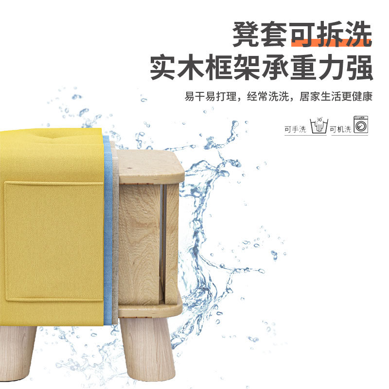 Fabric small stool household dwarf bench red bench soft seat sofa bench simple living room tea bench solid wood stool