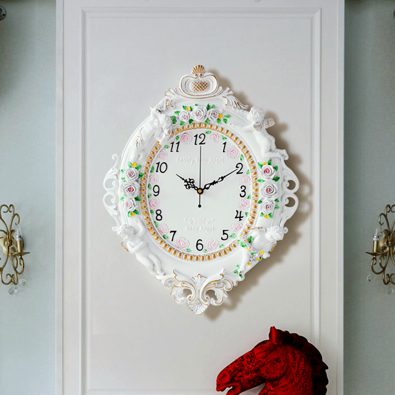 Creative light luxury pastoral clock living room bedroom mute wall clock wall decoration home simple quartz clock hanging type