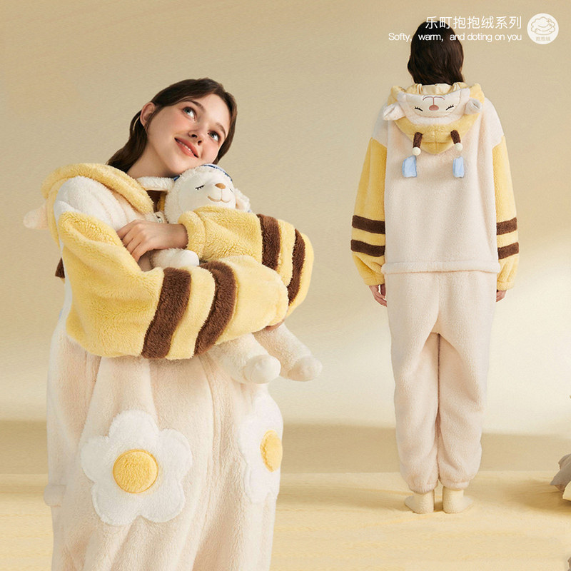 Leding LIVHEART joint (hugging fleece) pajamas women's winter cute bee sheep home service suit jumpsuit