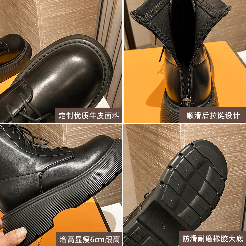 Aeglin thick-soled Martin boots female British style 2022 spring and autumn new all-match leather short boots to increase the height and show thin single boots