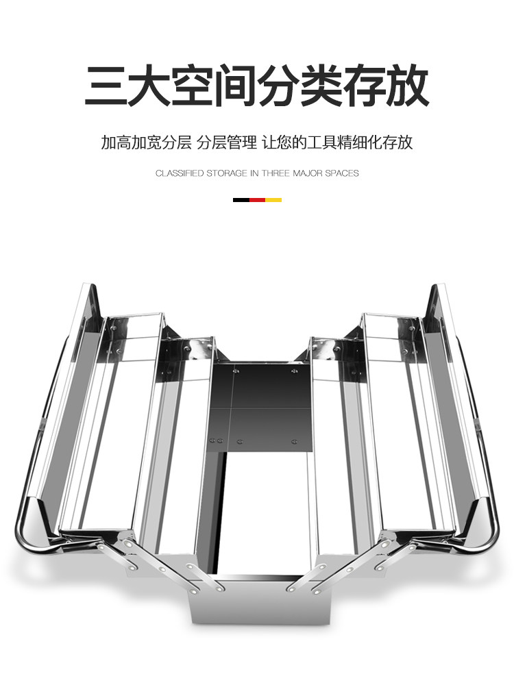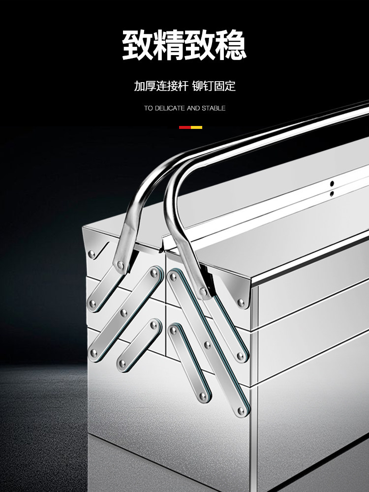 Stainless steel toolbox large three-layer folding household car tin storage box multi-layer thickened storage box iron box