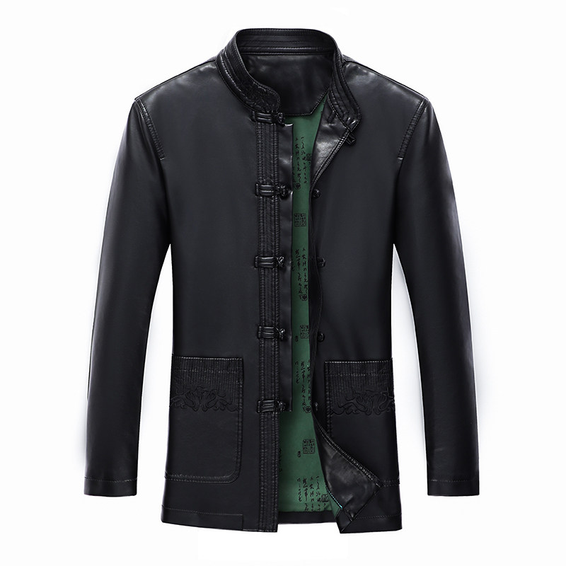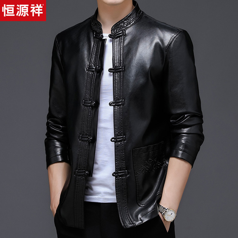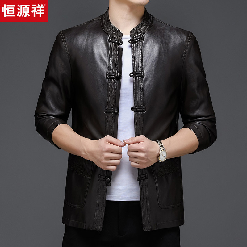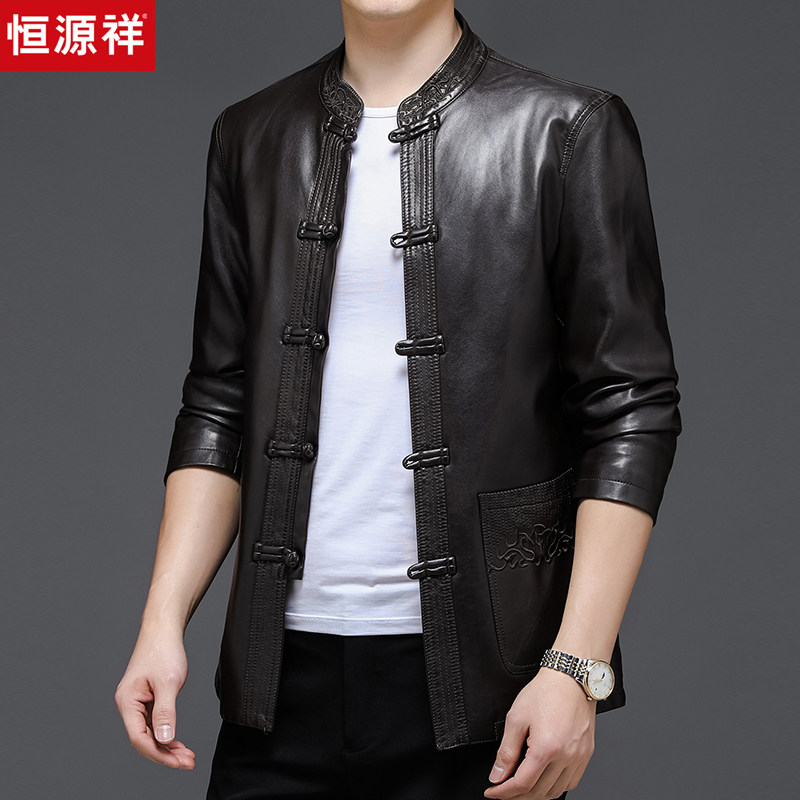 Hengyuanxiang genuine leather jacket Tang suit men's middle-aged and elderly father sheepskin leather jacket loose button grandpa jacket