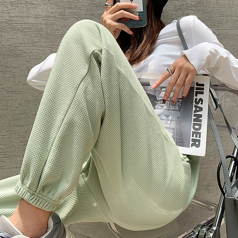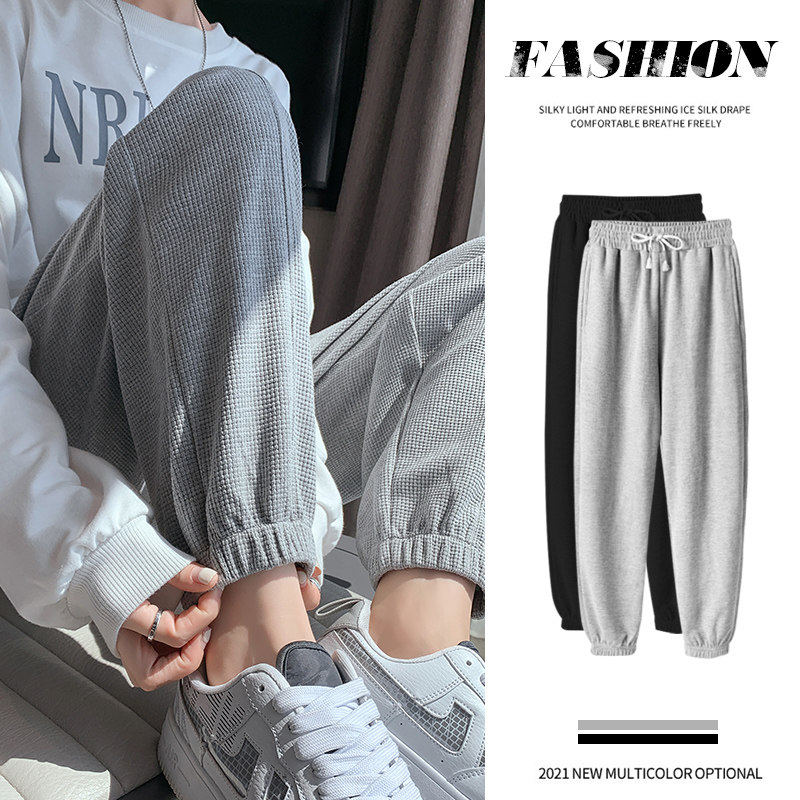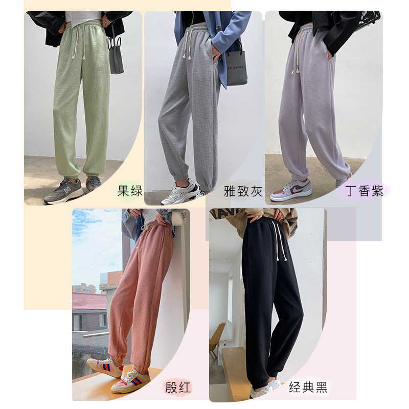Clearance Waffle Sweatpants Women's Spring and Autumn Loose Binding Feet Thin Drawstring Casual Grey Small Sweatpants