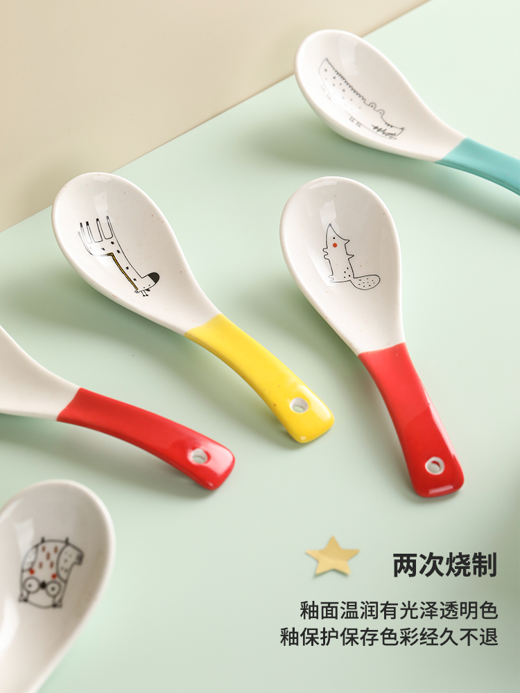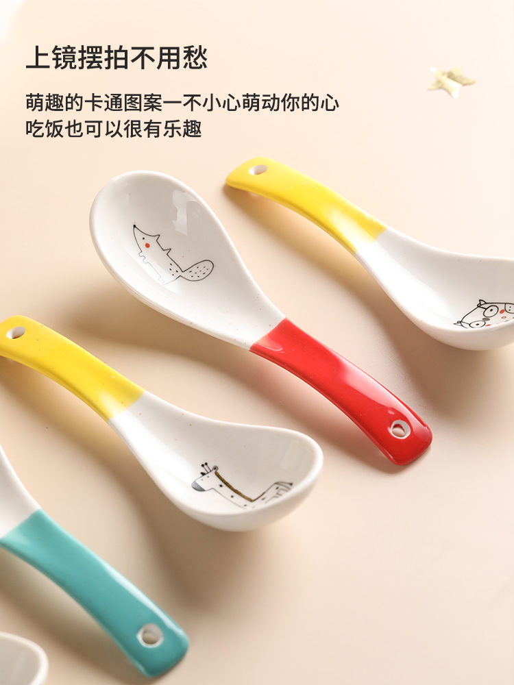 Blue lotus spoon children's cute net red cartoon ceramic heat-resistant household porcelain spoon children's spoon Japanese-style short-handled rice spoon