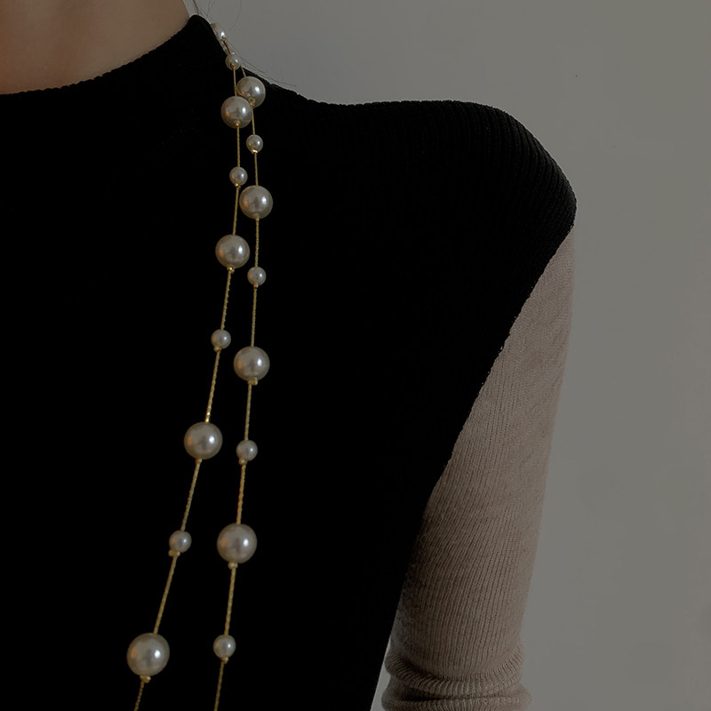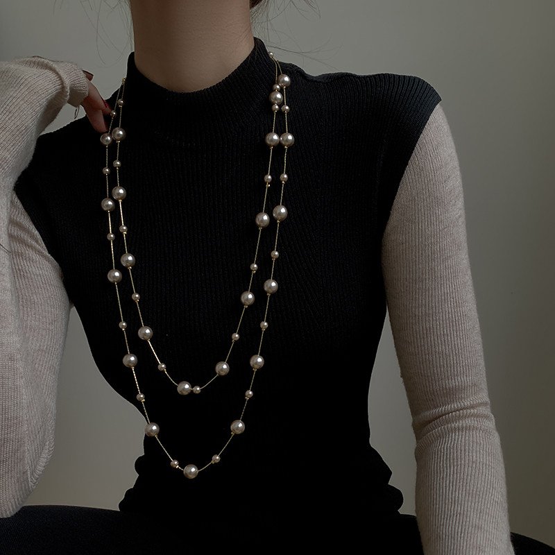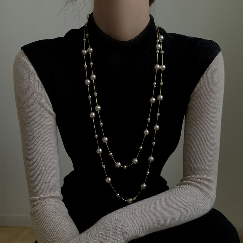 Korean pearl sweater chain female long version 2022 new autumn and winter high-end atmospheric necklace accessories simple temperament trend