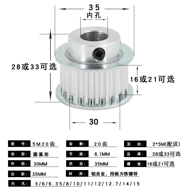 5M20 teeth BF type slot width 16 inner hole 55M20 tooth BF type slot width 16 inner hole 65M20 tooth BF type slot width 16 inner hole 6 355M20 teeth BF type slot width 16