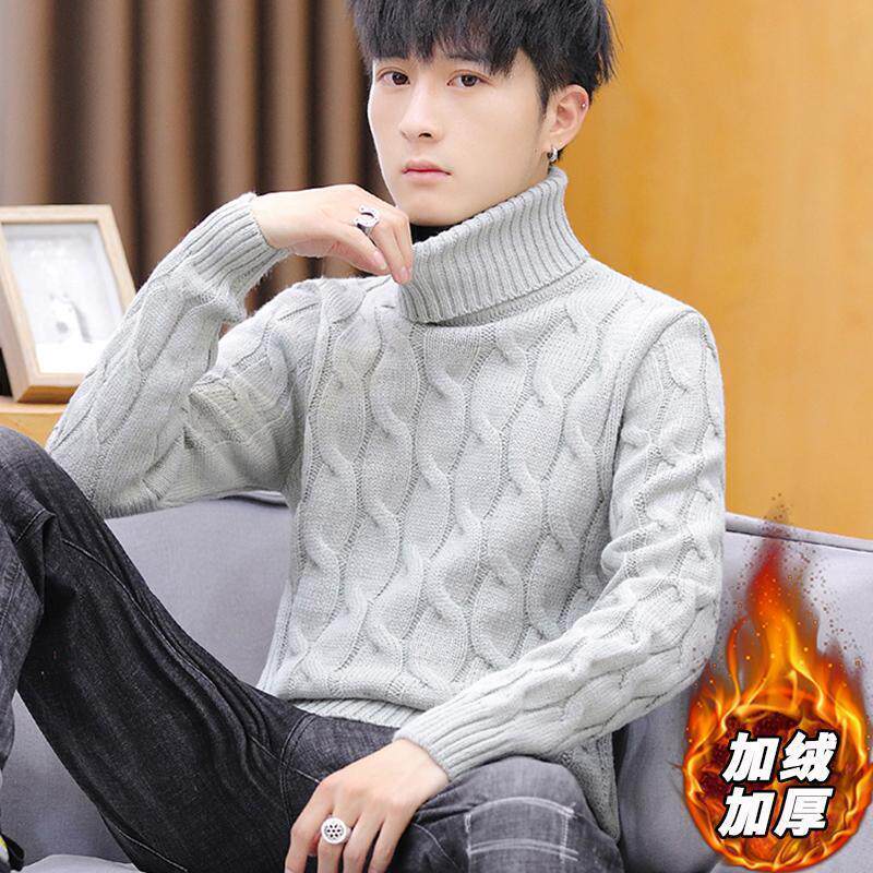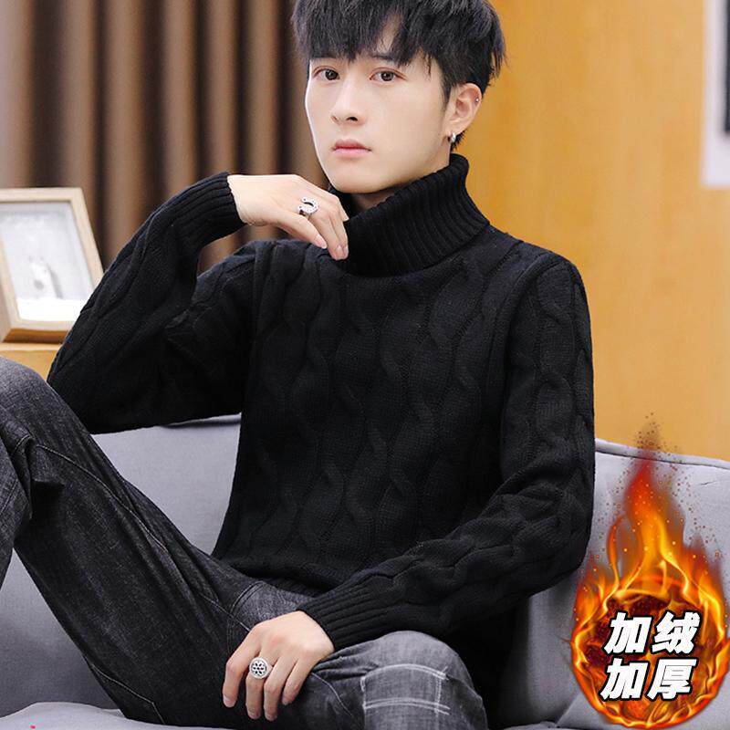 Young men's autumn winter thickened sweater Han version High-collar junior high school high school students handsome and velvety with bottom-knitted sweatshirt