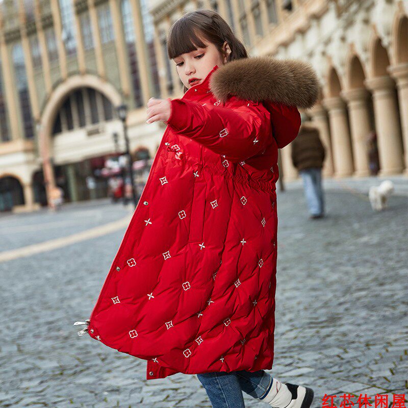 Brand girls' mid-length over-the-knee down jacket 2021 winter new style Western-style girls big boys and little girls thick coat