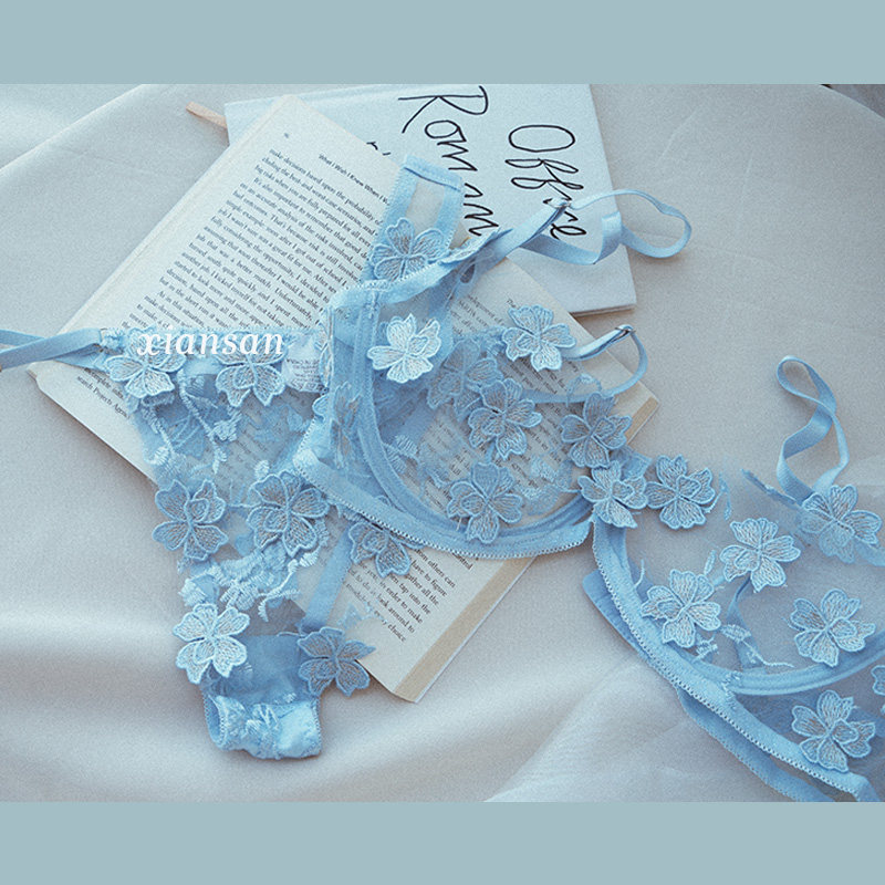 ins water soluble hollowed-out embroidery method lingerie light lavish steel ring on extra slim cup embroidered bra girl lingerie suit