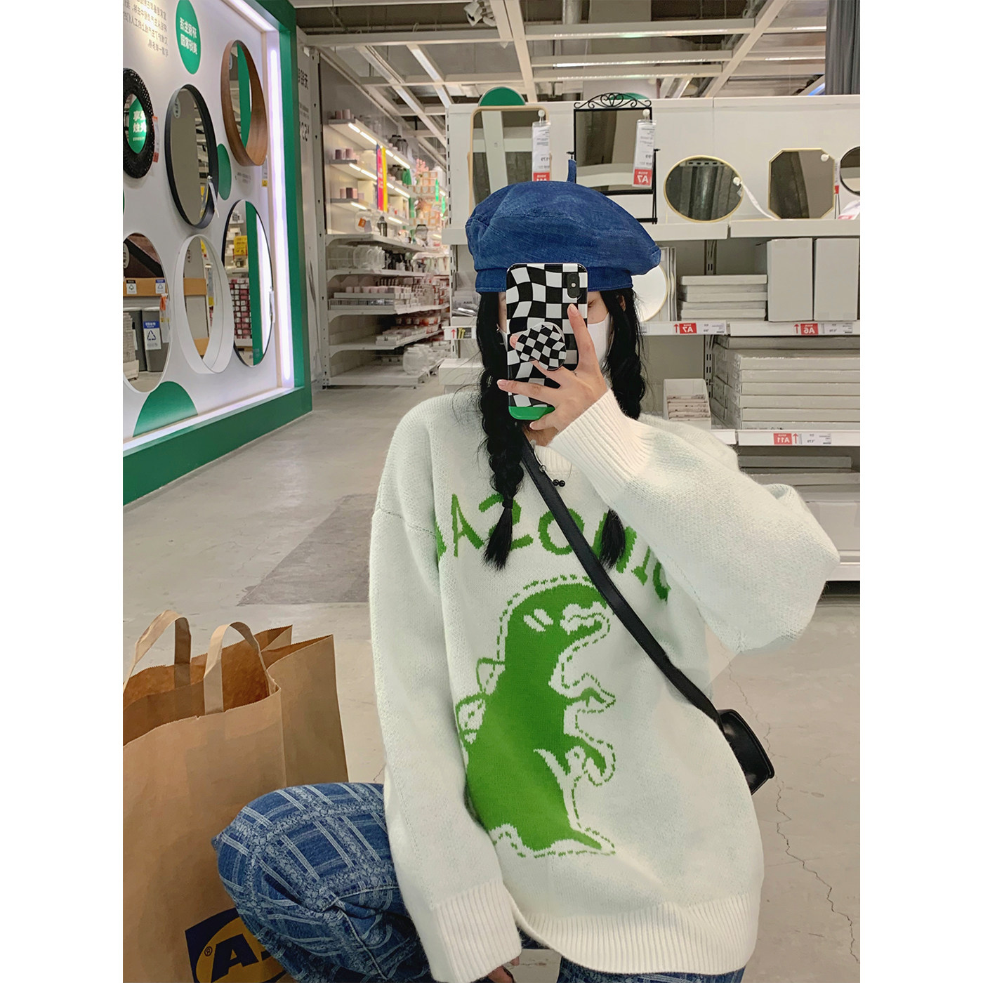 Green dinosaur sweater in a way