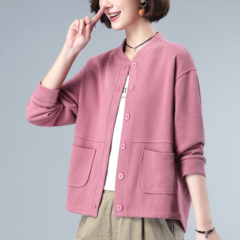 2021 Spring and autumn new small sub long sleeves shirt jacket Short middle aged women's blouse with thin cardiovert sweatshirt