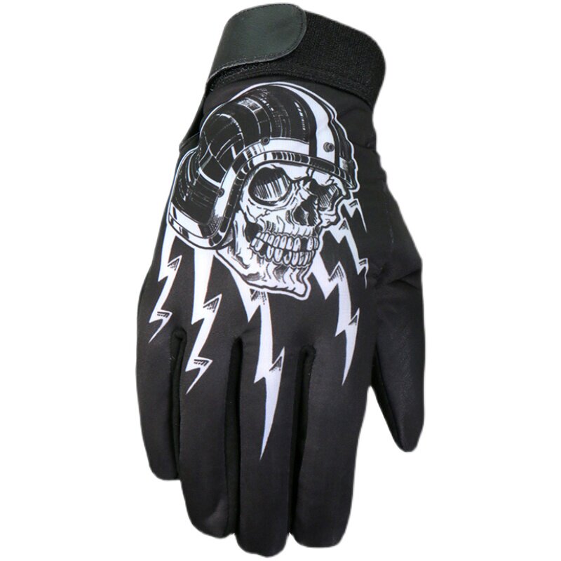 Spot personality skull print motorcycle rider gloves summer Harley DS style thin half finger full finger black