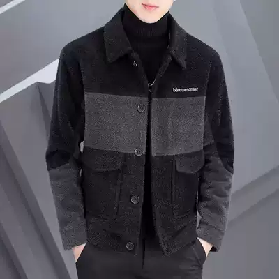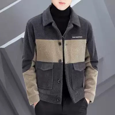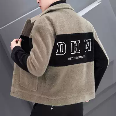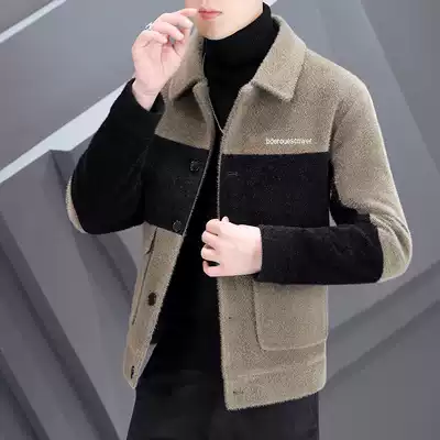 Winter thickened woolen coat men's short slim lapel imitation mink woolen jacket trend men's color coat