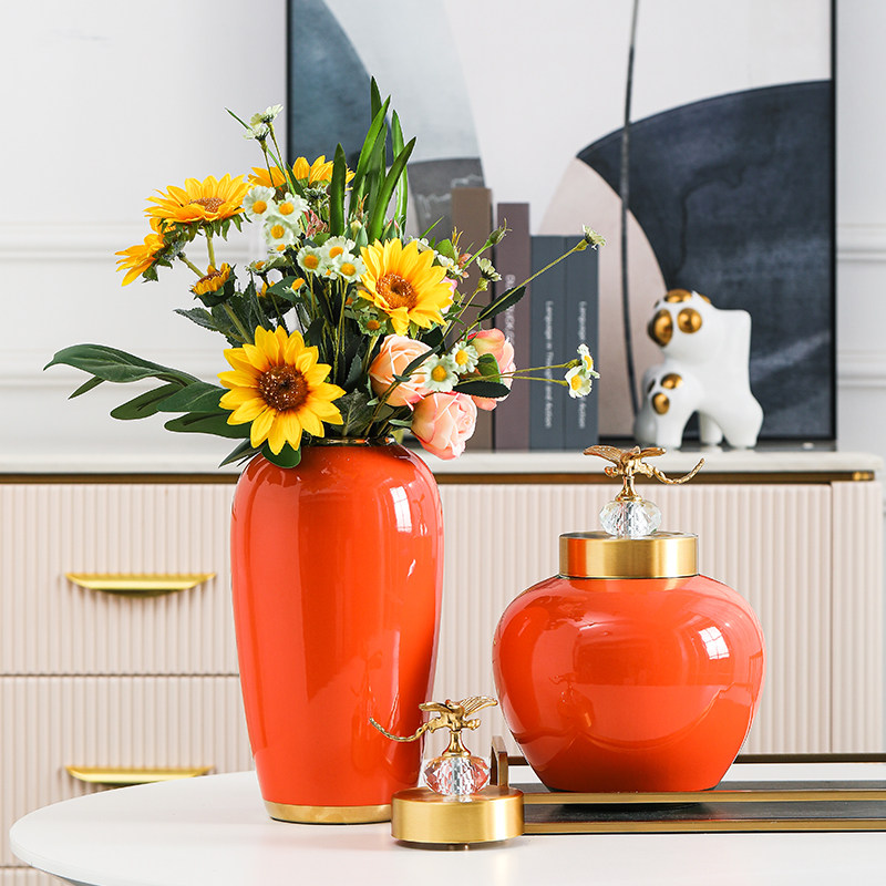 Jingdezhen Ceramic Vase Ornament Light Luxury Decoration New Chinese Style Living Room Entrance Hotel Lobby Club Countertop Flower Arrangement