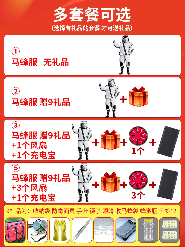 White breathable hornet suit No gift White breathable hornet suit 9 gifts White breathable hornet suit 1 fan 1 mobile charger 9 gifts White breathable hornet suit 3 fans 1 pc