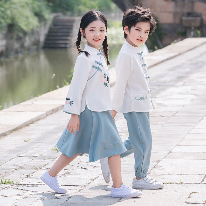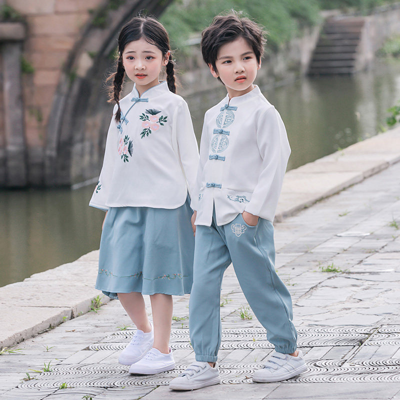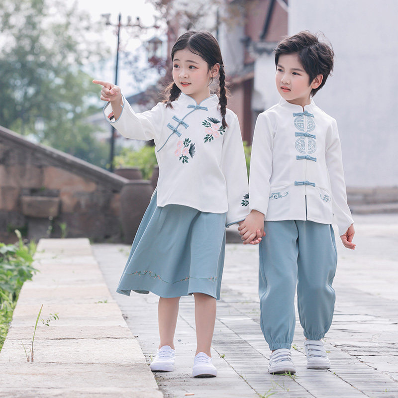 Kindergarten Act Out of Costume Chinese Style Chinese Wind Hanfu Children of Tang Costume Republic Wind Elementary School Children Long Sleeve Fall Performance Suit