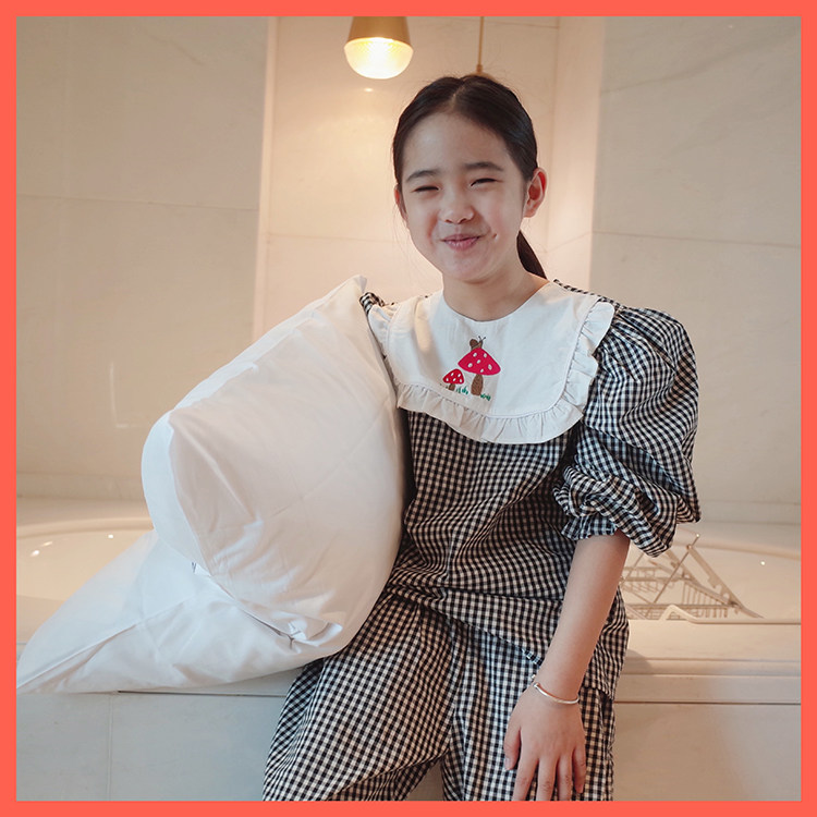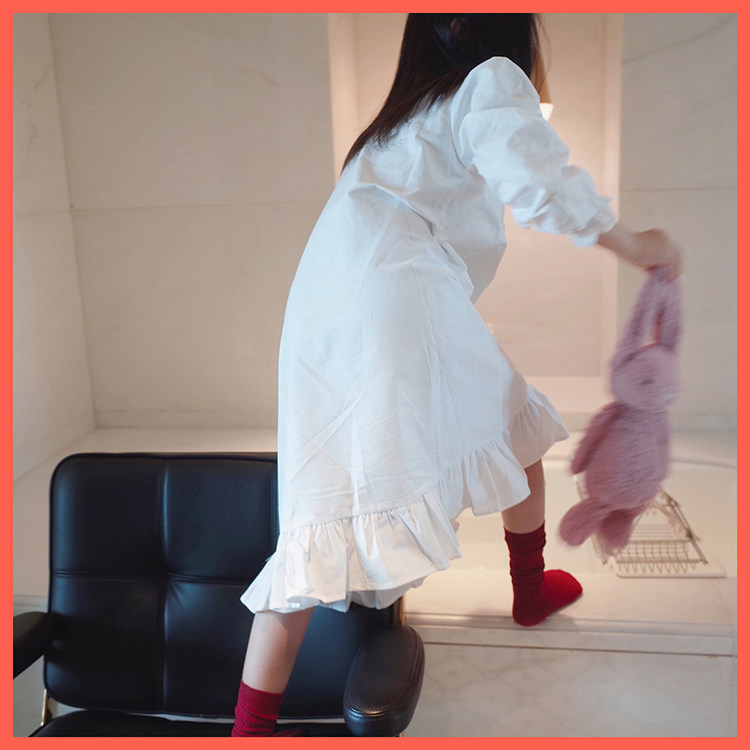 Doll Aimei New Autumn Girls' Small, Middle and Big Children's Lotus Leaf Embroidered Side Sweet Nightdress Pajamas Long-sleeved Trousers Set