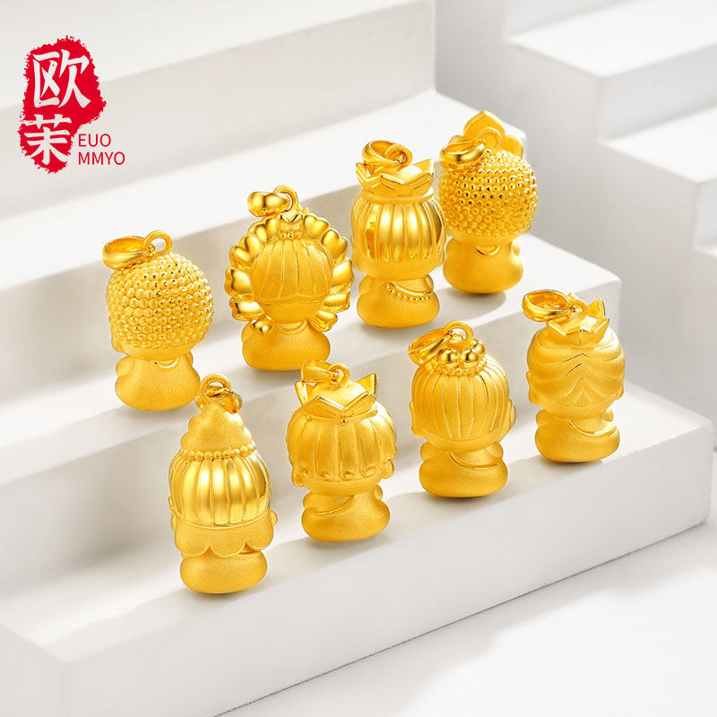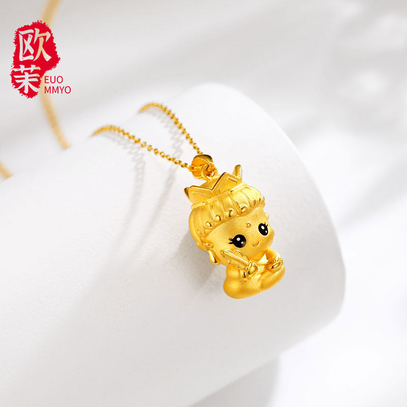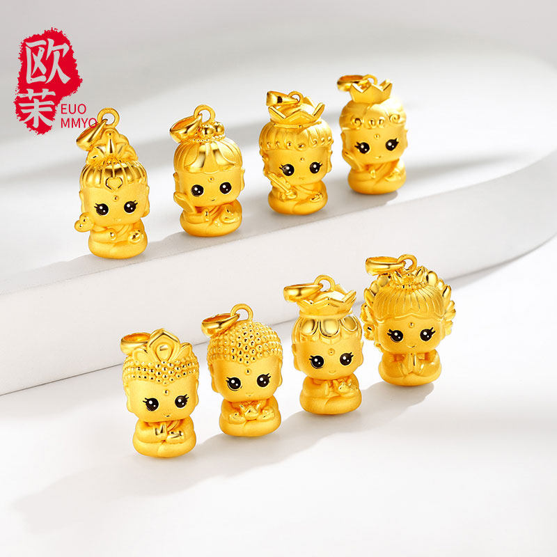 Gold twelve zodiac natal Buddha pendant 3d hard gold cute eight guardian gods Guanyin 999 pure gold necklace pendant